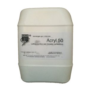 Acryl 50 è un lattice per cemento e calci a base di resina vinilica in dispersione acquosa. Aggiunto all'acqua d'impasto nelle giuste proporzioni permette di ottenere malte e betoncini ad alto potere adesivo e con caratteristiche meccaniche di elasticità, adesione e di resistenza superiori a quelle di un impasto cementizio normale.